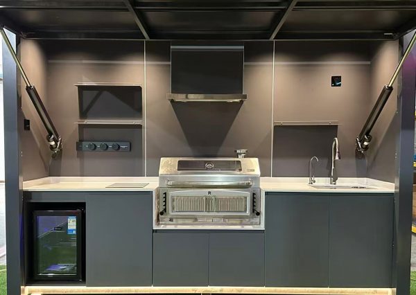 BBQ for outdoor kitchen–Crafted for the discerning grill enthusiast, this barbecue grill is engineered for durability and exceptional performance. Featuring a robust steel frame interior, it guarantees structural integrity and long-lasting stability. The exterior is elegantly finished with a sleek aluminum plate, offering both a modern look and enhanced resistance to the elements. The combination of steel and aluminum ensures the grill is both lightweight and highly durable, making it an ideal choice for both casual backyard cooking and serious outdoor grilling.