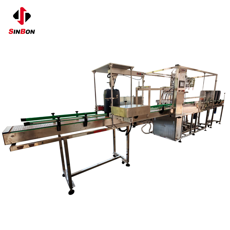 For bulk lubricant packaging, SINBON’s industrial pail and drum filling systems address the efficiency limitations of traditional weighing-based fillers. The automatic pails rotating and filling line (DLF200-5QS) incorporates an automated alignment system that tracks and positions 5-30 liter containers, ensuring filling nozzles engage properly with container openings. This eliminates manual positioning labor while preventing spills from misalignment.