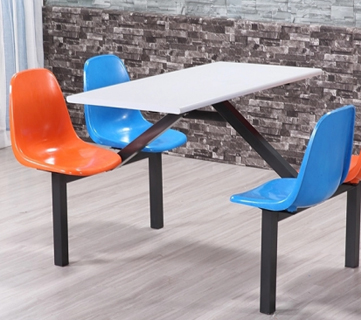 | Materials | Polypropylene seats, steel frames, melamine tabletops |
