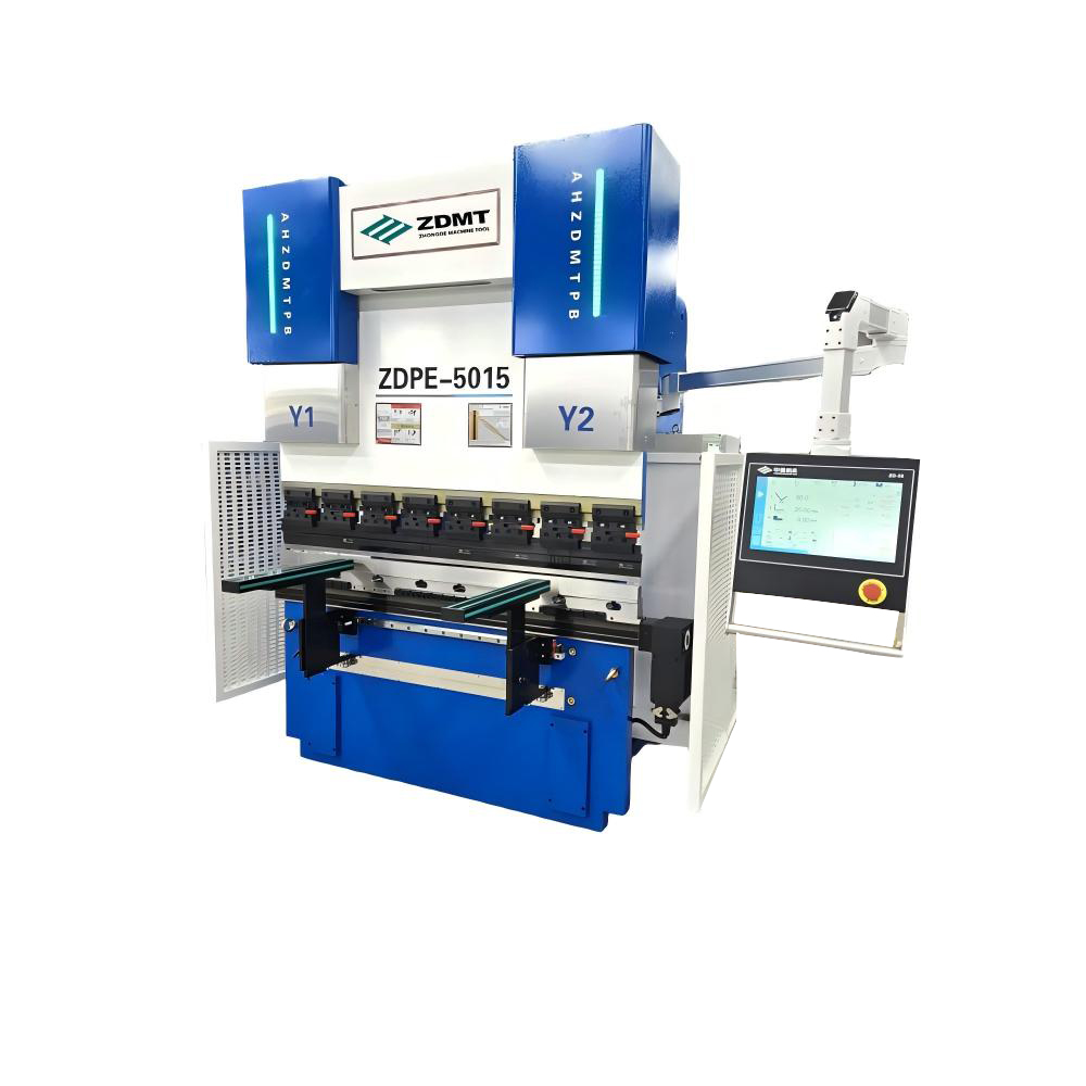 The model of this cnc press brake is ZDPE-5015 (WE67K-50/1500),with ZD-58 CNC control system, linear encoder, back gauge servo motors and other accessories of famous brand are installed for perfect machine performance.